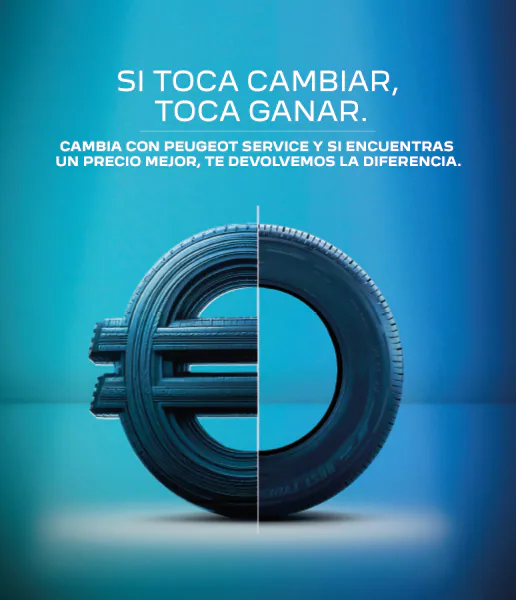 * Promoción válida en Península y Baleares para sustitución (suministro, montaje y equilibrado) contratada en servicios oficiales Peugeot adheridos a esta promoción entre el 1 y el 30 de septiembre de 2025, de 2 ó 4 neumáticos. Si durante el periodo promocional presenta un presupuesto más barato se igualará el precio o devolverá la diferencia. Ver condiciones generales. No canjeable en efectivo ni acumulable a otras ofertas en vigor.